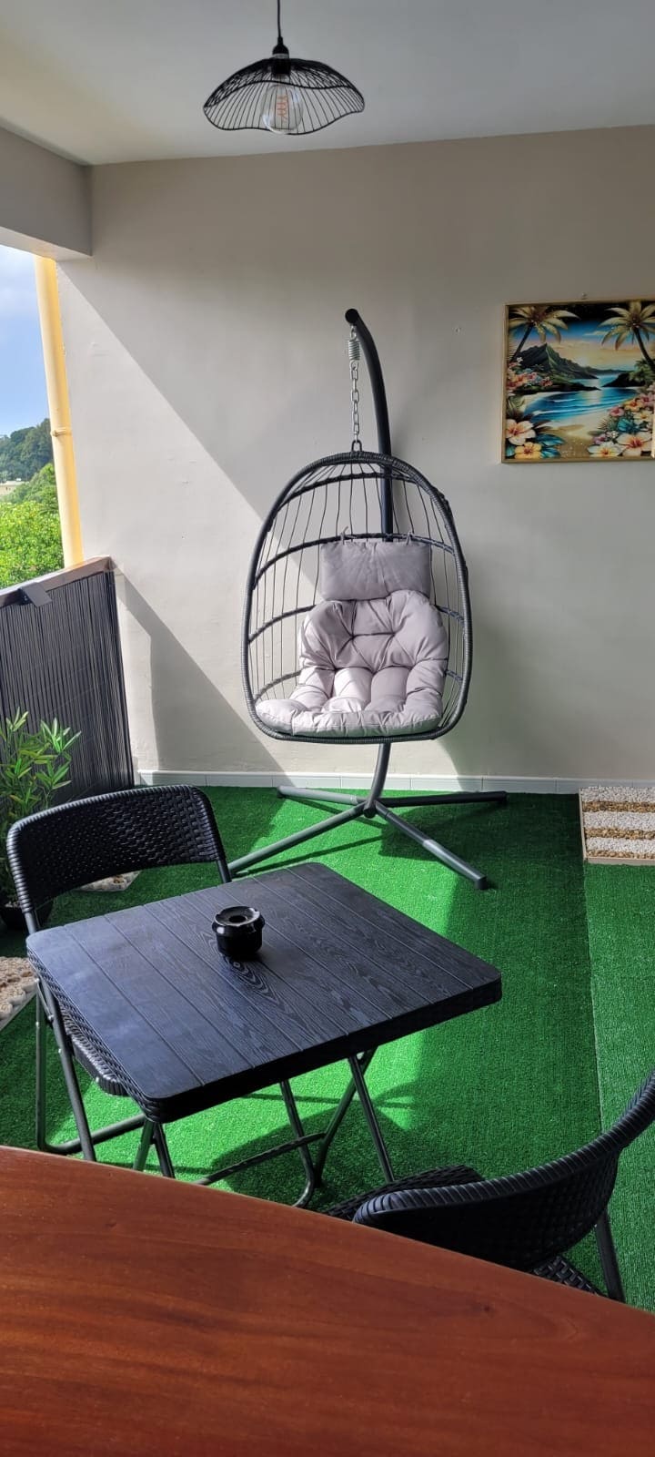 This condo is located on the ground level of a private nice large home built in 1964 and renovated on a 1000M2 property land overlooking the "Pitons du CARBET" hills. The area is conveniently located in the center of the island on the caribbean side near the main city of Fort de France just at walking distance away from a shopping center, accessible by car from most popular attractions and gastronomic restaurants of the island.The beach and nautical center of Schoelcher is just a 7 minutes ride.