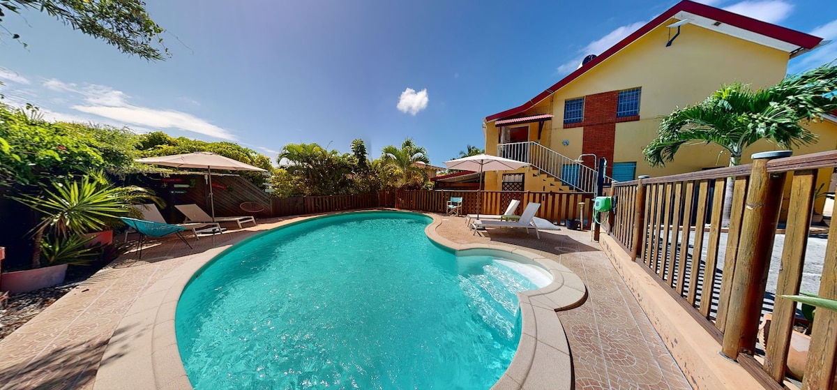 Confortable studio climatisé, tout équipé. Piscine et jacuzzi pour votre détente et bien être. Situé à l'entrée de la réserve naturelle de la Caravelle, Vanille des Isles bénéficie d'une situation privilégiée. Sous l'air de l'alizé, vous découvrirez depuis votre terrasse la baie du trésor coté sud, ou la côte atlantique coté nord, avec en toile de fond la Dominique par beau temps. Plage des surfers à 3 minutes à pied, Tartane à 2 kms, au départ des ballades sur la presqu'île de la Caravelle.