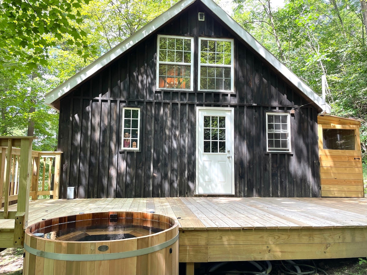 Get away from it all in this secluded off-grid cabin. Inspired by traditional lean-tos and modern Swedish design. This minimal space features a wall of windows that makes you feel like you are sleeping in the trees, while staying cozy and dry! Use this as a base camp to explore the Catskills, or just relax, unplug, and listen to the nearby stream, birds, & the rustle of leaves! *For winter bookings please fully read the Other things to note" section*