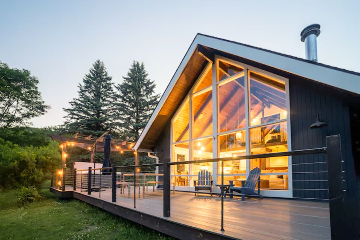 卡茨基尔森林A型房屋:热水浴缸、桑拿、星空!