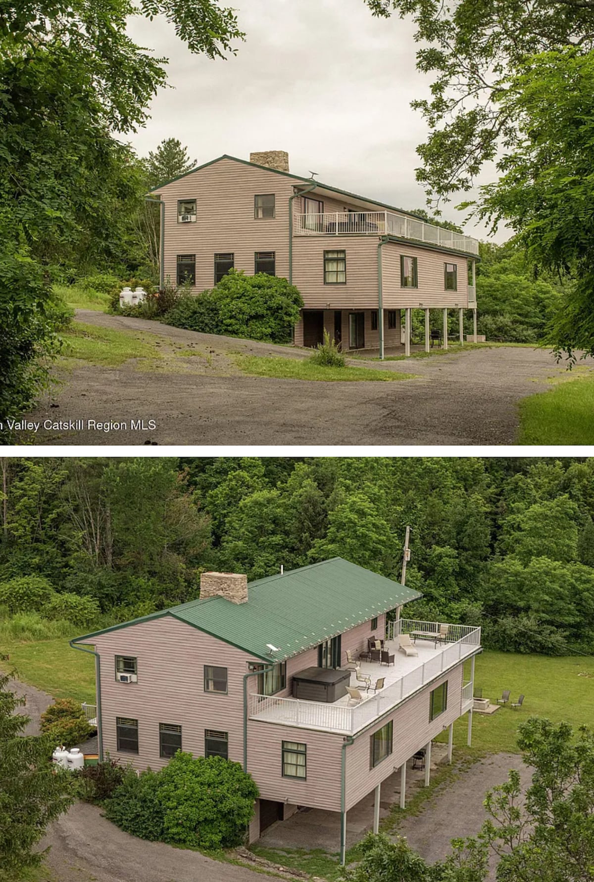 Welcome to the best sweeping views in all of the Catskills! This secluded getaway sits on more than 8 acres of land without a neighbor in sight! Whether you are looking to vacation with friends and family, or a romantic escape, this is the place for you. Enjoy this 3 BD 2.5 BA home year round, including our 8 person hot tub! Amenities galore including outdoor firepit, lounge chairs, sledding, BBQ, ping pong, board games, TV and more. This house is perfect for travelers of all types!