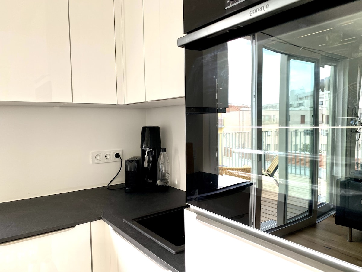 屋顶公寓,15分钟可达市中心,免费停车
