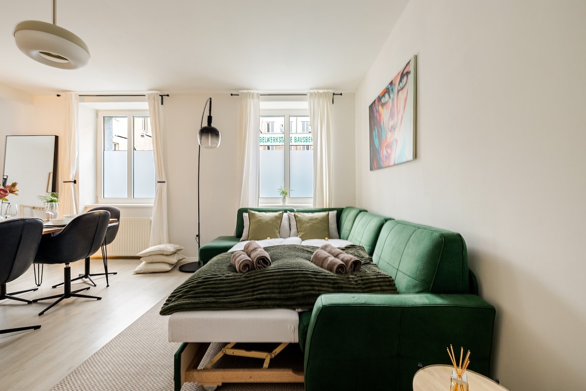 FREE ✔Coffee and tea ✔Large tv ✔Fast wifi ✔Full kitchen ✔Quality toiletries+soap Das kürzlich renovierte Loft ist mit Liebe zum Detail und Designermöbeln zu einem gemütlichem sowie einzigartigem Raum gestaltet.Du findest hier Ruhe und Inspiration. Die zentralen Lage - Altstadt-Zentrum zu Fuss erreichbar; Supermärkte,Restaurants, berühmte Kaffeehäuser, Clubs, Parks, U-Bahn und Strassenbahn uvm. sind ums Eck. In Gehweite zu Wiens größtem Krankenhaus, dem AKH, div. Universitäten und Privatkliniken
