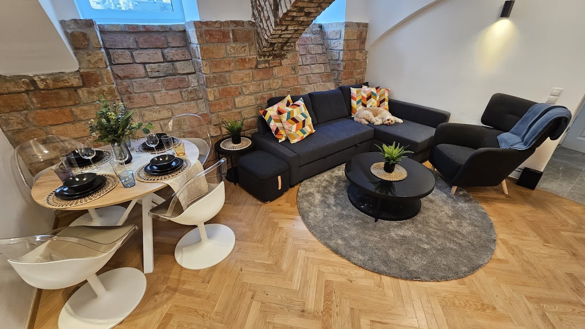 Das Blackriver Loft Vienna verbindet urbanes Design mit gemütlicher Wohnlichkeit – ideal für alle, die Wien stilvoll erleben möchten. Zwischen Innenstadt und Schönbrunn gelegen, ist es der perfekte Ausgangspunkt für Entdeckungen und bietet zugleich einen ruhigen Rückzugsort, um den Abend entspannt ausklingen zu lassen. Messing, Stahl, Holz und Pflanzen verleihen dem lichtdurchfluteten Loft seinen besonderen Charakter. Das Interior stammt großteils aus unserer eigenen Wiener Manufaktur :)