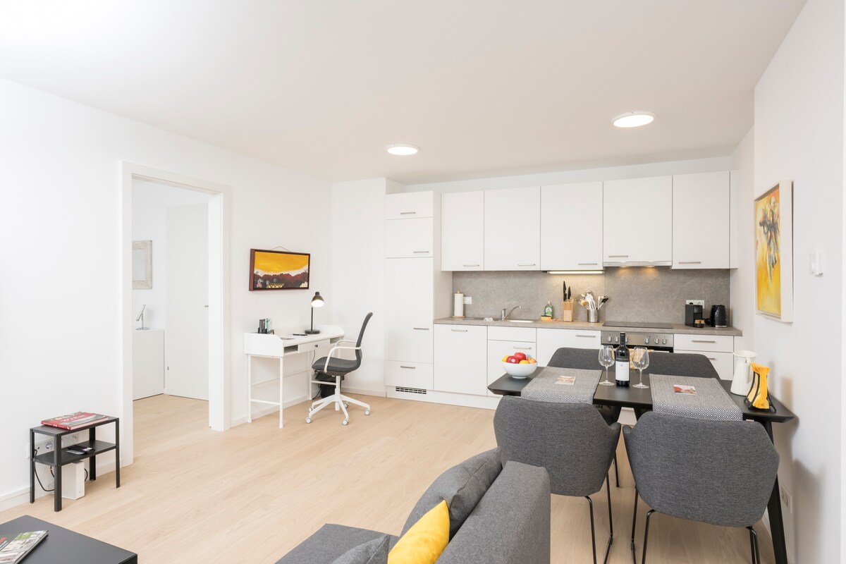 Moderner Komfort in ruhiger Lage – dein Zuhause auf Zeit in Wien. Das Apartment bietet ein Schlafzimmer mit bequemem King-Size-Bett, ein helles Wohnzimmer mit Sofa, Smart-TV mit Netflix sowie eine voll ausgestattete Küche. Das moderne Bad mit Walk-in-Dusche sorgt für zusätzlichen Komfort. Highlight ist der private Balkon zum ruhigen Innenhof. In wenigen Minuten zur U-Bahn, ca. 10 Minuten ins Stadtzentrum. Ideal für Paare, Geschäftsreisende und Städtetrips. Kontaktloser Self Check-in inklusive.