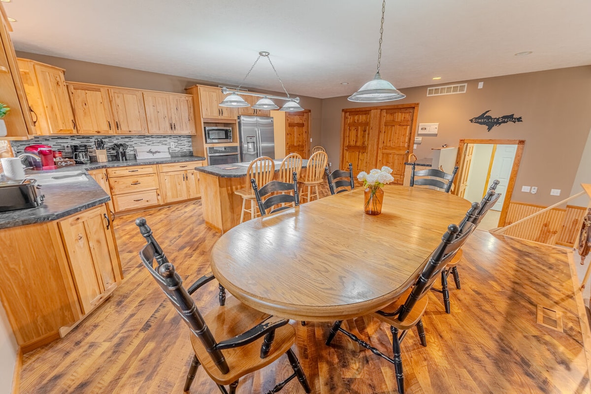 Nestled in the heart of the Hiawatha National Forest, our property offers a spacious, comfortable retreat for large groups—perfect for outdoor enthusiasts and families alike. With room for up to 18 guests, you'll find plenty of space to relax after a day of adventure. Whether you're ATVing, snowmobiling, mountain biking, hiking, or snowshoeing, the Haywire Trail is right outside your door. For relaxation, enjoy a cozy evening fireside inside or outside at the year-round fire pit and patio.