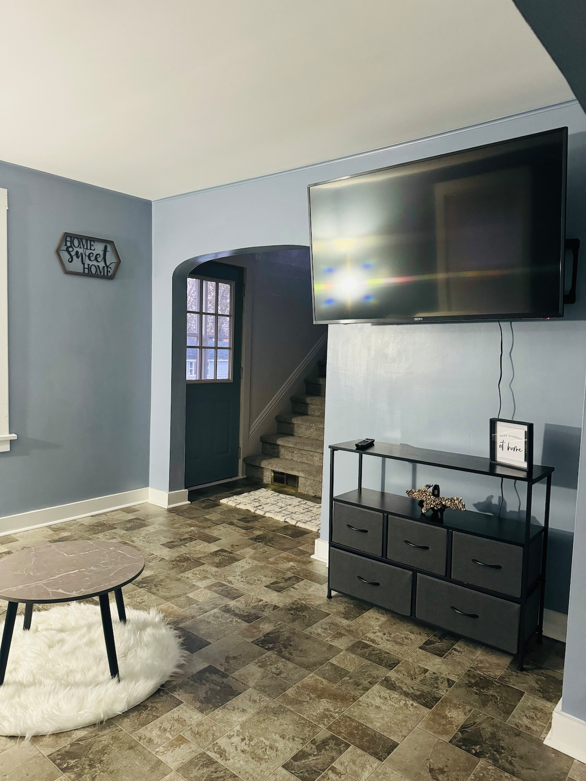 Nice, clean apartment just 5 minutes from Michigan Tech and a view of Portage Lake (lake access too!). One stall of garage parking available so you can go right from car to apartment without dealing with the snow. The driveway is plowed. Wifi, heat, keurig coffee selection included. Washer and dryer are in the spacious bathroom with a shower. Full kitchen and electric fireplace. Stairlift from garage. Queen sized bed with additional pullout couch (about full sz) and toddler bed.