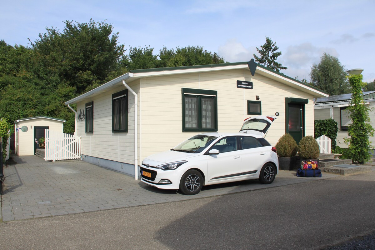 LUXE TRENDY VAKANTIE CHALET 45M2, geschikt voor 4 personen. Stijlvolle high end ingerichte chalet , deels overdekte veranda , ruime tuin met gratis privé parking naast chalet! Ultiem genieten en voorzien van alle luxe en gemakken; -airco -cv -ruime moderne complete open keuken voorzien van zout, peper, suiker, thee, kruiden etc. - vaatwasser -oven - magnetron -gasfornuis -grote koelkast met vriezer -fijne badkamer -aparte toilet -2 slaapkamers -2 ruime kasten -muggenhorren