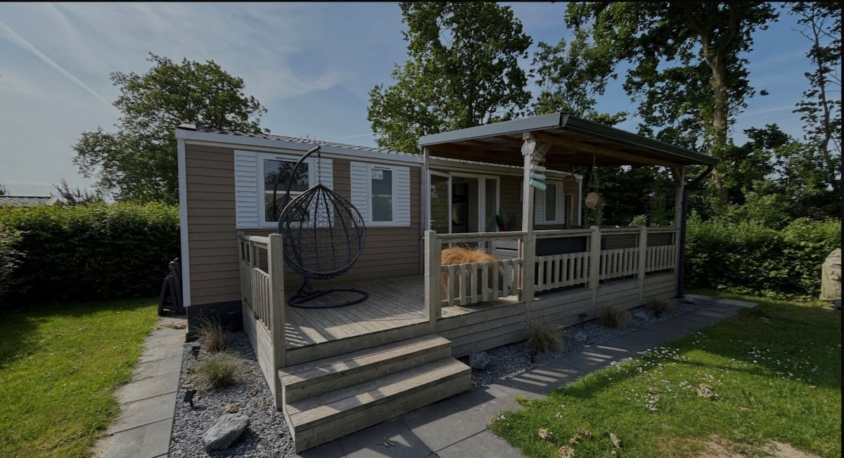 LUXE TRENDY VAKANTIE CHALET 45M2, geschikt voor 4 personen. Stijlvolle high end ingerichte chalet , deels overdekte veranda , ruime tuin met veel privacy en gratis privé parking naast chalet! Ultiem genieten en voorzien van alle luxe en gemakken; -airco -cv -ruime moderne complete open keuken voorzien van zout, peper, suiker, thee, koffie kruiden etc. -vaatwasser -oven -gasfornuis -grote koelkast met vriezer -fijne douche -aparte toilet -2 slaapkamers -2 ruime kasten -muggenhorren