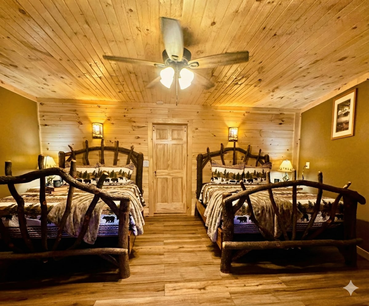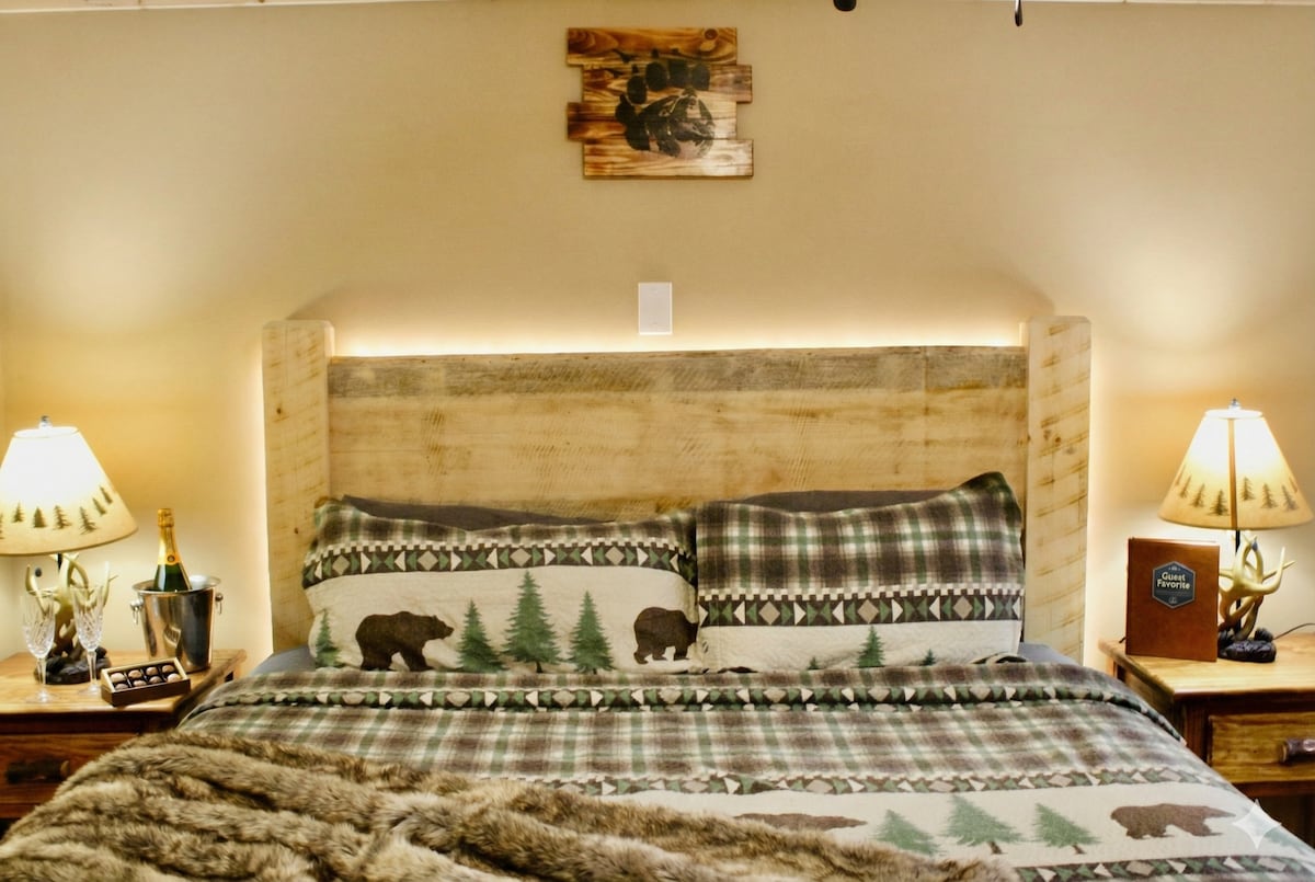 Handcrafted studio designed for connection. Soak, rest and recharge in your private jacuzzi after exploring Lake George. This King Studio blends rustic charm with comfort. Warm pine walls, handcrafted furniture and lodge-style décor create the perfect backdrop for a romantic escape. Unwind in the jacuzzi, pour a glass of wine and feel the Adirondack warmth. Whether you’re celebrating an anniversary, escaping the city or simply need a reset, this space is made for slowing down and reconnecting.