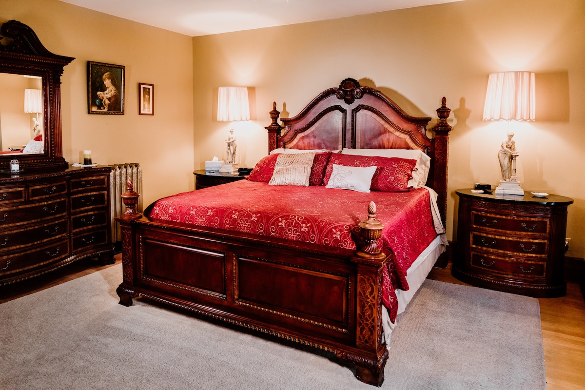 1897 Beekman House Bed and Breakfast is a beautifully restored Victorian manor. The house retains its original front porch, pocket doors, hardwood floors, high ceilings, stained glass windows, richly-toned woodwork, and grand staircase. Located in Central New York’s world-class wine region, our beautifully-appointed home, modern amenities and gracious hospitality will provide the perfect setting for your Finger Lakes vacation. The Empress Room is an exquisitely appointed room fit for a queen.