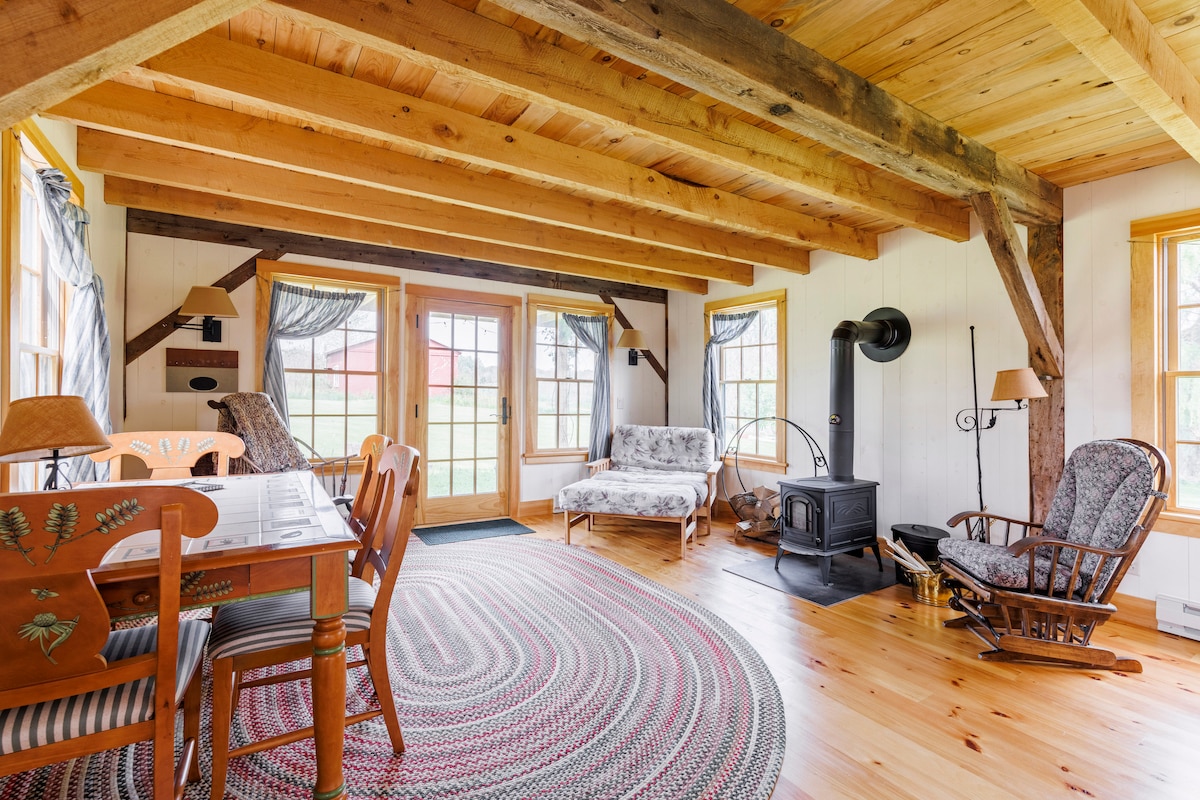 This listing will be removed if ABNB does not renounce the Musk DOGE coup. New windows and doors offer views of the barns and pond. The tiny kitchen is stocked with (when available) eggs from our chickens, honey from our bees, homemade granola, milk, fruit, and a locally roasted coffee. Breakfast baked goods will be delivered each morning, if you wish. Visit waterfalls, lakes, wineries, farmers markets, local shops, and then dine out at a nearby resta