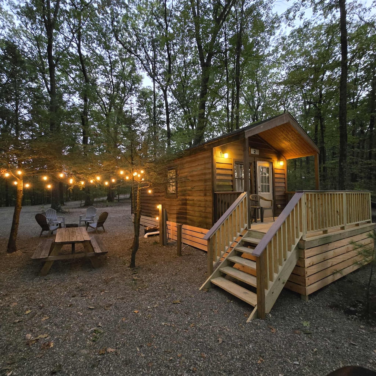 Come and enjoy your stay at the Historic Lakewood Park. We have ten cabins open year-round for rental at the property. Each offers an enjoyable experience on our 63-acre and 10-acre lake. Amenities include single-room cabins with fireplace, kitchenette, queen bed, couch (folds to a bed), private bathroom with 5' tiled shower, wifi, cable TV, lake fishing, hiking, outdoor firepit, grill, and more. Linens are included with this cabin (bedding, pillows, towels, wash clothes, soaps, shampoo, etc.)