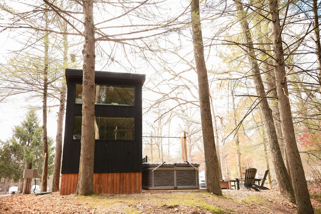 Enjoy the lovely setting of this romantic spot in nature. Enjoy some quiet time as you sit on the porch and listen to the Little Black Creek or relax in a Private hot tub! This modern and spacious tiny home is the place for you! Whether your looking to spend some quiet time with your partner or getting away with some friends. The tiny home is fully stocked with all the modern amenities needed to make your stay a memorable one.