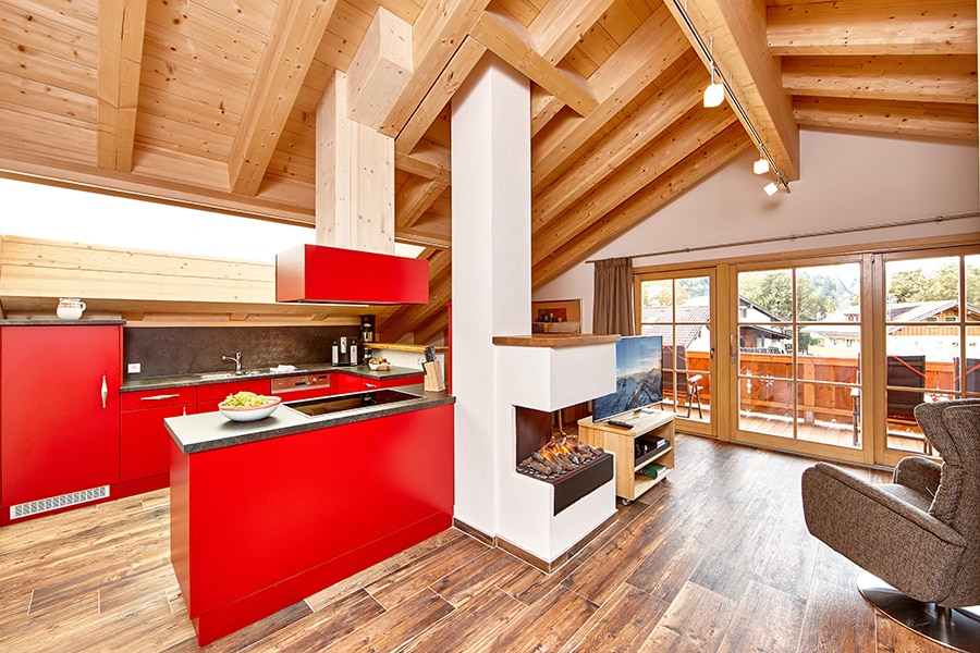 Holzböden, Lehmputz, alte liebevoll restaurierte Holzmöbel, das Badezimmer groß und hell. Diese Wohnung gibt Raum sich zu erholen und sich wohlzufühlen. Die Wohnküche ist modern und schlicht, lädt ein zum Kochen und Genießen. Der Wohnraum ist lichtdurchflutet, hat ein bildschönes Sitzfenster und einen großen Balkon mit wunderschönem Blick auf das Alpenvorland. Zwei behagliche Schlafzimmer und eine kleine Lehmputz-Sauna machen die Wohnung zu einer kleinen Heimat auf Zeit.