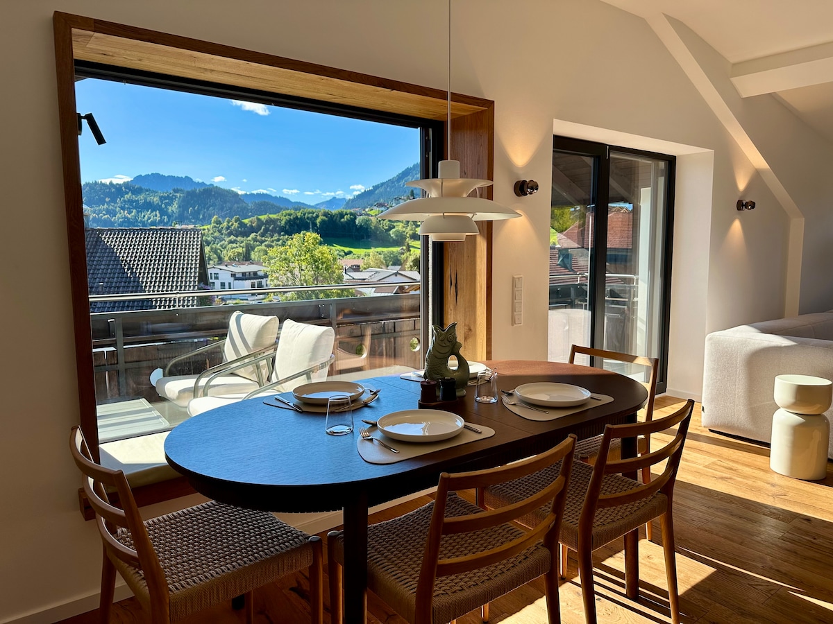 Unser Ferienhaus ist ein großzügiges, lichtdurchflutetes, freistehendes Architektenhaus mit einer großen Dachterrasse u. einen puristischen Garten in Hanglage. Auf der Dachterrasse bietet sich ein grandioser Rundblick in die Alpen und auf die Zugspitze. Unser Haus bietet Ihnen eine vollausgestattete Open-Space-Küche. Zur Entspannung ist eine Infrarot-Dampfkabine und ein Hottub zur kostenfreien Nutzung vorhanden. Das Haus ist klimafreundlich mit PV-Anlage, Batteriespeicher und Luftwärmepumpe.