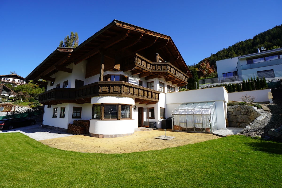 Situated on the outskirts of a Tyrolian mountain village this place offers you a wonderful-broad view. The apartment, lovingly combining tradition and modernity will let you calm down and recharge your batteries instantly. A closeby cable car enables you to all kinds of mountain sports in summer and winter. Yet- even those, who just "stay and relax" will feel at home. WIFI, TV, BT-boxes, parking space are available free of charge; for the Sauna we take a small feey. Kitchen is well equipped .