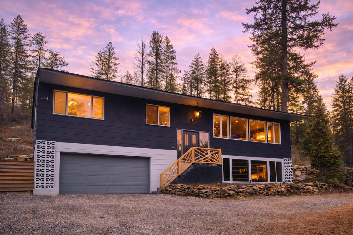 Cozy A-Frame retreat, pinned to the top of a rock with spellbinding views of Lake Pend Oreille and the Sandpoint area mountains. Just 4 miles from downtown and 5-minute drive to the Schweitzer shuttle. This intimate studio with a loft is a haven for couples. Unwind in a queen-sized bed, prepare meals in the granite kitchenette, and indulge in a custom shower with a heated toilet seat and bidet. Enjoy other modern amenities like high-speed WiFi and AC. End of the road privacy.