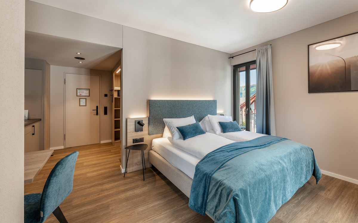 3.5-room apartment in a prime location: view of Lake Lucerne with everything in the immediate vicinity: Beach promenade, 🏌️♀️Minigolf, restaurants, stores, 🚢 boat station, bus stop (takes you to ⛷️Skigebiet Stoos in 12 minutes), access to 🚴♀️Fahrrad and 🚠hiking tours and 🏊♀️Baden in the lake, all less than 5 minutes away!