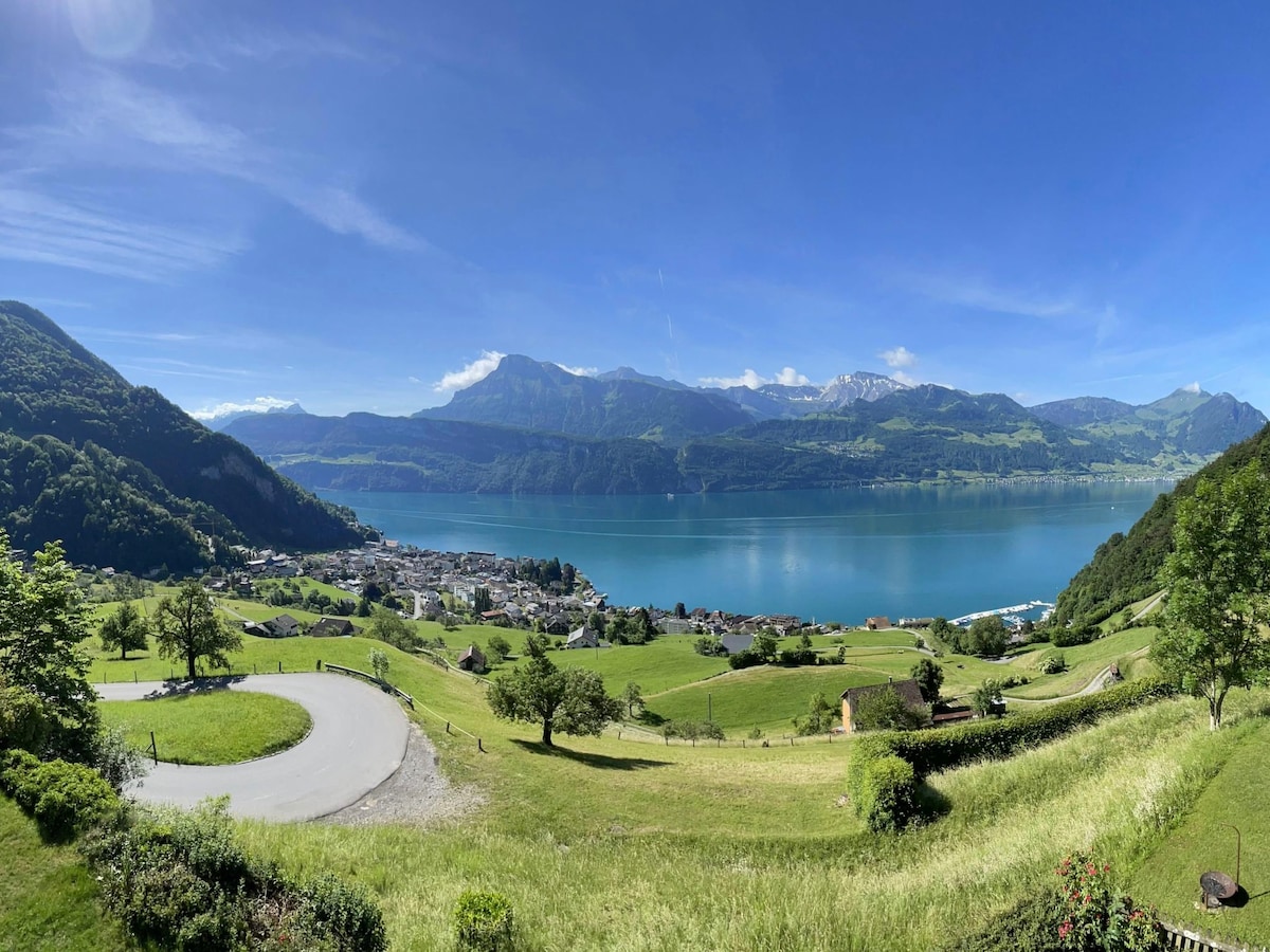 Experience the bliss of life in the Alps, at an affordable price. The apartment is located just steps from the historic TSB funicular train (connecting Treib ferry station on Lake Lucerne, to our village), as well as the start of the Weg Der Schweiz 35 km hiking trail, taking you on an unforgettable trek around the southern tip of Lake Lucerne, and picturesque villages like Bauen, Siskon, and Brunnen. Seelisberg is a quiet Swiss village, that offers you the chance to disconnect and recharge.