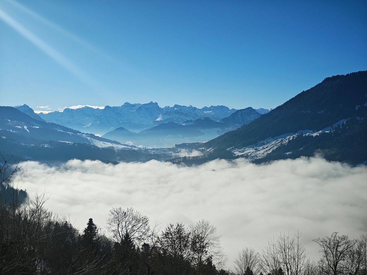 Experience the bliss of life in the Alps, at an affordable price. The apartment is located just steps from the historic TSB funicular train (connecting Treib ferry station on Lake Lucerne, to our village), as well as the start of the Weg Der Schweiz 35 km hiking trail, taking you on an unforgettable trek around the southern tip of Lake Lucerne, and picturesque villages like Bauen, Siskon, and Brunnen. Seelisberg is a quiet Swiss village, that offers you the chance to disconnect and recharge.