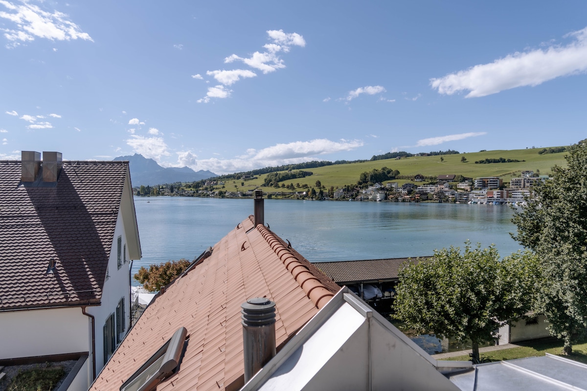 ✨ Stunning Penthouse with Lake Views! ✓ Right on the lake with views of Mount Pilatus ✓ Large terrace ✓ Kids-friendly: toys, crib & high chair ✓ 2 bathrooms for extra comfort ✓ Fully equipped kitchen with NESPRESSO ✓ High-Speed WiFi & smart TV with NETFLIX ✓ Washing machine & dryer ✓ Free parking & excellent public transport connections ✓ Quick access to Luzern & Zurich Airport ☆☆☆☆☆ "The accommodation is fantastic! Very clean and comfortable. Fully equipped – highly recommended!"