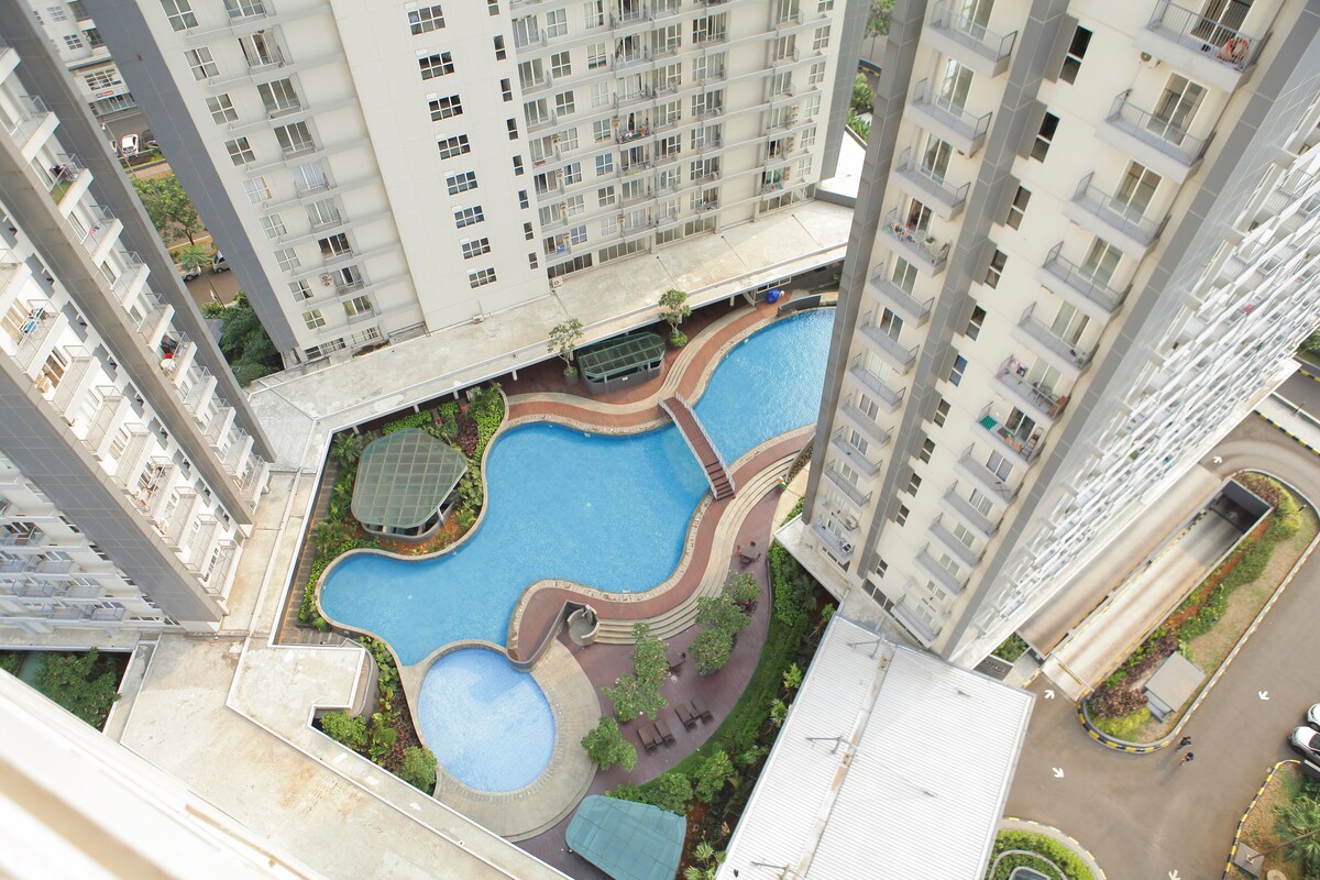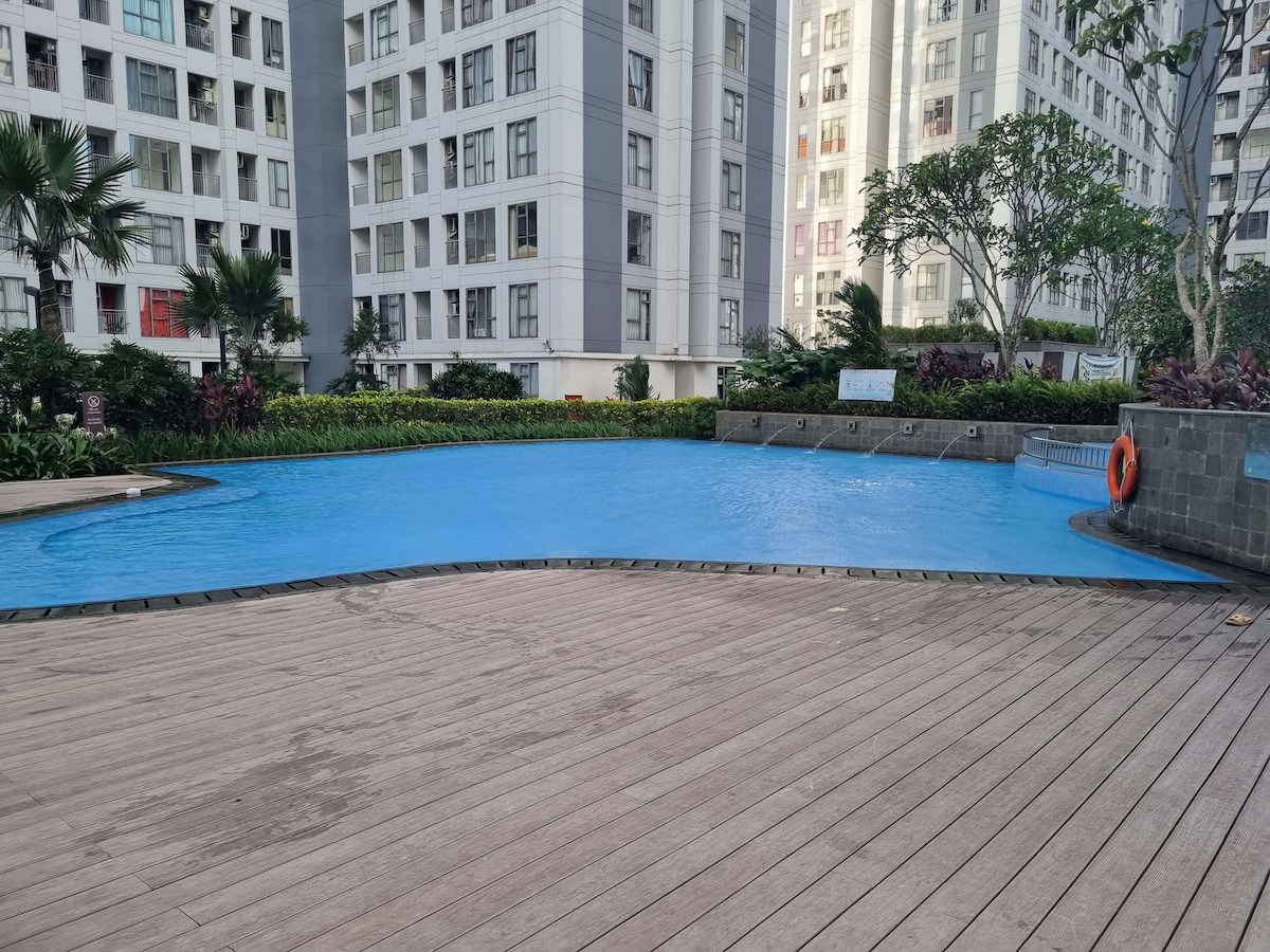 2 BR apartement relayout into 1 BR so more space for living and kitchen with pool view located in Mid-Town Serpong area and a strategic location surrounded by restaurants, entertainment and close to Summarecon Mall Serpong. Free WIFI from CBN 50 Mbps speed, Netflix, Spacious kitchen and dining room. For your convenience, we provide : - soap and shampoo - hair dryer - irons and ironing matt - toothpaste and 2 toothbrush - towels - blankets - drinking water and you can let us know if it is out.