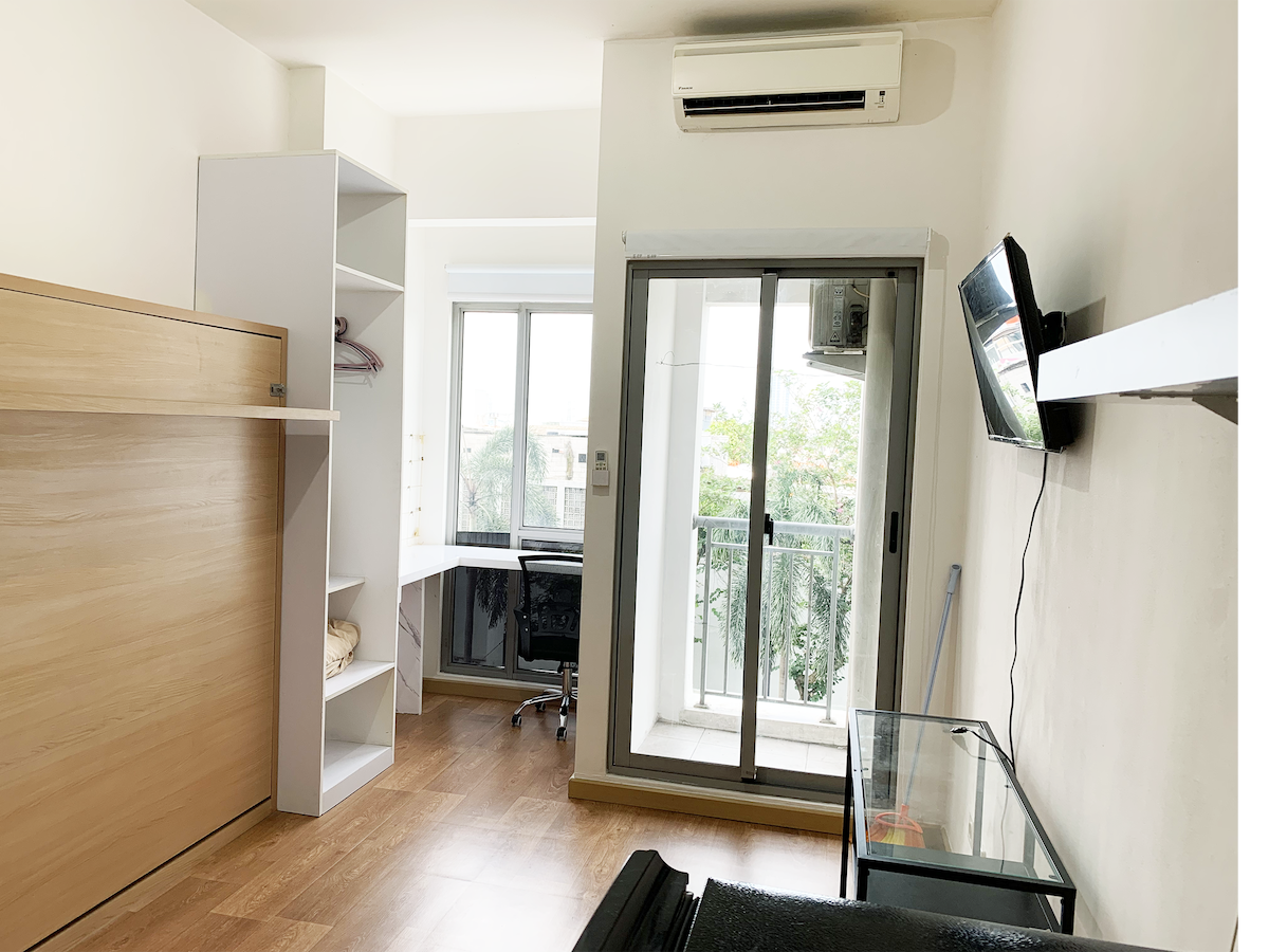 BRAND NEW & Modern interior, equipped with vinyl wooden floor and warm droplights. The unit is equipped with a sofa, 40" SMART ANDROID TV, working desk and smart strip, it’s own bathroom, a queen-sized bed, a spacious wardrobe cabinet, and a balcony that overlooks the city. Kitchen basic utensils are also provided for LIGHT cooking. The unit is also surrounded by tons of facilities for better quality life (swimming pool, thematic garden, children playground, & skybridge access to mall SMS).