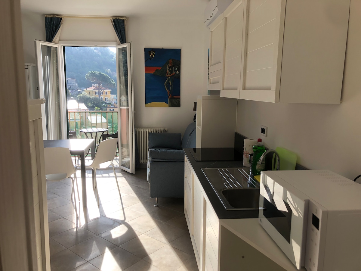 Appartamento completamente ristrutturato, dotato di ogni comfort,composto da zona giorno con cucina attrezzata e divano letto, camera da letto, bagno con cabina doccia. Incantevole terrazza vista mare, in posizione dominante sul borgo marinaro. Facilmente raggiungibile sia dai parcheggi che dalla stazione ferroviaria,a pochi minuti dalla splendida marina e dall'imbarco dei battelli.A pochi passi da bar, ristoranti, farmacia alimentari in grado di garantire un soggiorno all'insegna del relax.
