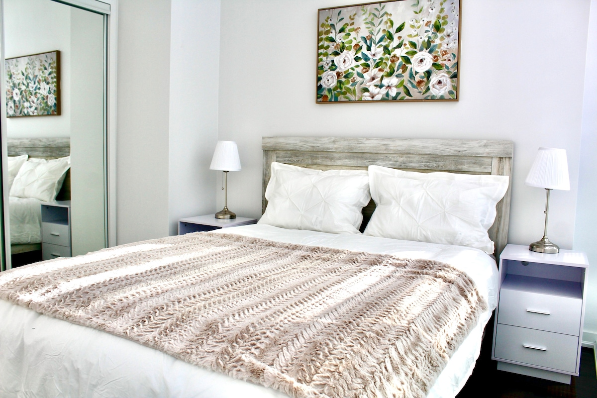 Modern and stylish condo in the heart of downtown Toronto. Features 2 queen beds and 1 single sofa to sleep up to 5 people (The sofa does not pull out). 40th+ floor, perfect direct view of the CN Tower and Rogers Center with floor-to-ceiling panoramic windows. Professionally cleaned and disinfected after each guest checkout. 3 mins walk to Rogers Centre(Blue Jays) & Air Canada Centre(Raptors, Maple Leafs), CN Tower, Aquarium, waterfront.