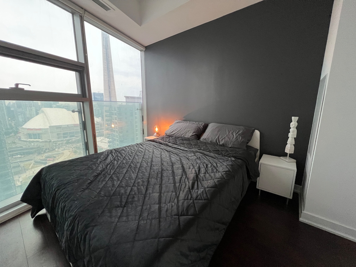 Wake up to sunrise over Lake Ontario in this cozy condo. You will be able to enjoy the breathtaking view from 50+ floors with floor to ceiling panoramic windows. Truly spectacular. Newly built modern condominium building. We are situated in the heart of downtown Toronto. 5 minutes walking distance to CN Tower, Rogers Center, Scotiabank Arena, Aquarium, waterfront, public transportation. Supermarket and Starbucks downstairs.