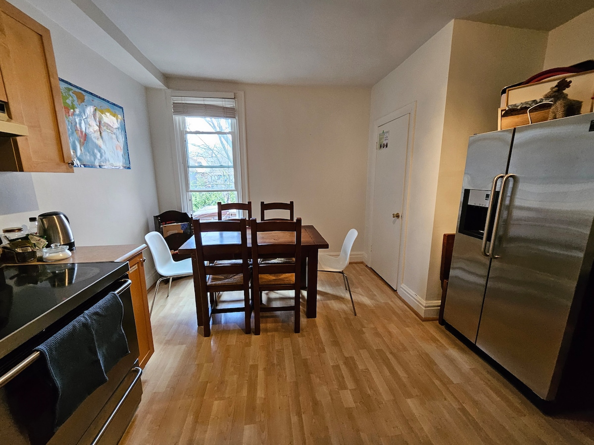 THE ANNEX OASIS Unwind on a lush, rainforest-inspired balcony with sweeping downtown views - steps from cafes, trendy shops & restaurants, culture & UofT. Our spacious 1-BD home in Annex blends comfort, charm & location. ➜ 3-min walk to St. George Subway & UoFT ➜ Free overnight street parking ➜ Complimentary breakfast snacks, coffee & tea ➜ 2 workstations+high-speed WiFi ➜ 60" Home Theater Smart TV ➜ Beautiful sunsets from balcony Your homestay in Toronto.