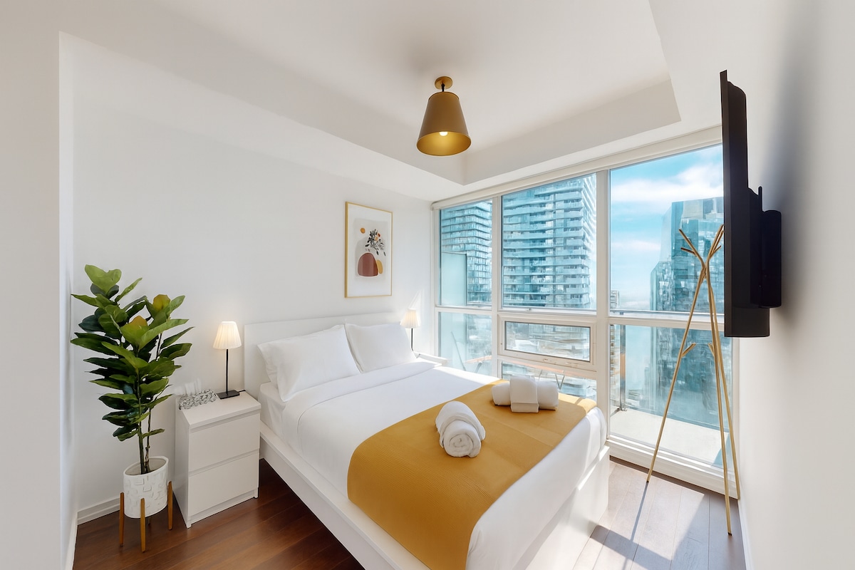 Ideal for one or two guests - solo guests, couples, friends or those in town for work. No parties or additional guests permitted. Enjoy views from the large balcony with great views of the CN Tower, Lake Ontario and Toronto skyline! Located next to Union Station, making it easy for guests to get to and from. Close to all forms of transit. Short walk to CN Tower, The Harbourfront, sports/concert venues, the Entertainment District, restaurants and shopping. Please read the rules section in full!