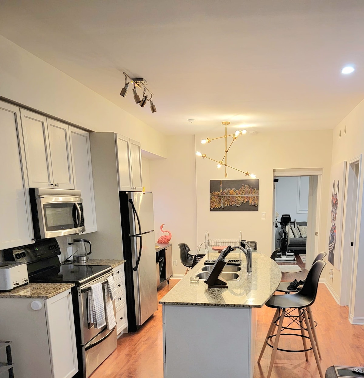 Fully renovated, modern, Bright, luxurious, and spacious ( over 1800 sq/ft) 2-bedroom, 2-bathroom high ceiling above ground apartment, separate entrance, and Patio for your next cozy home away from home! 5-star rated and top 5% of homes in AirBnB! As central as it gets in the GTA. You'll be close to Pearson Airport, Highway 401/404/407, shopping malls, grocery stores, and an array of trendy restaurants, movie theaters, parks, and bicycle/ hiking trails all around Book With Confidence!