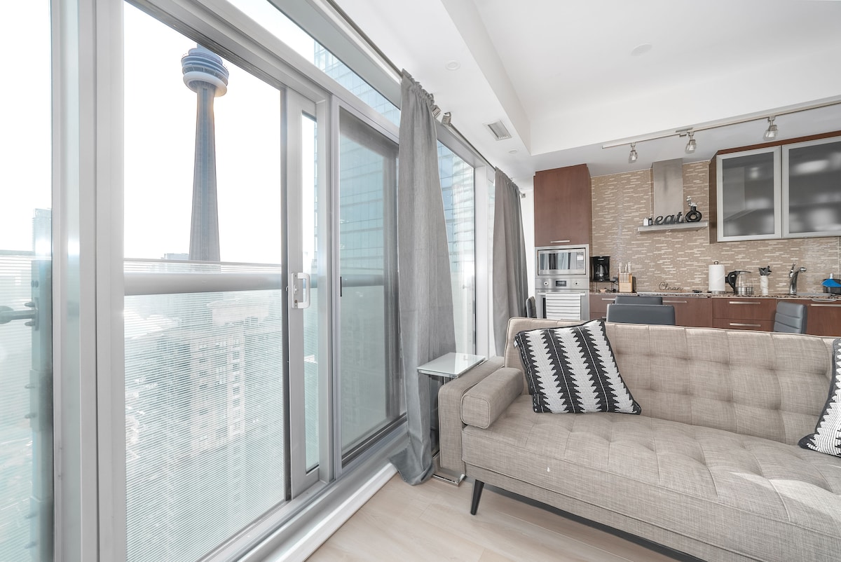 现代高层豪华公寓,带阳台,靠近加拿大国家电视塔