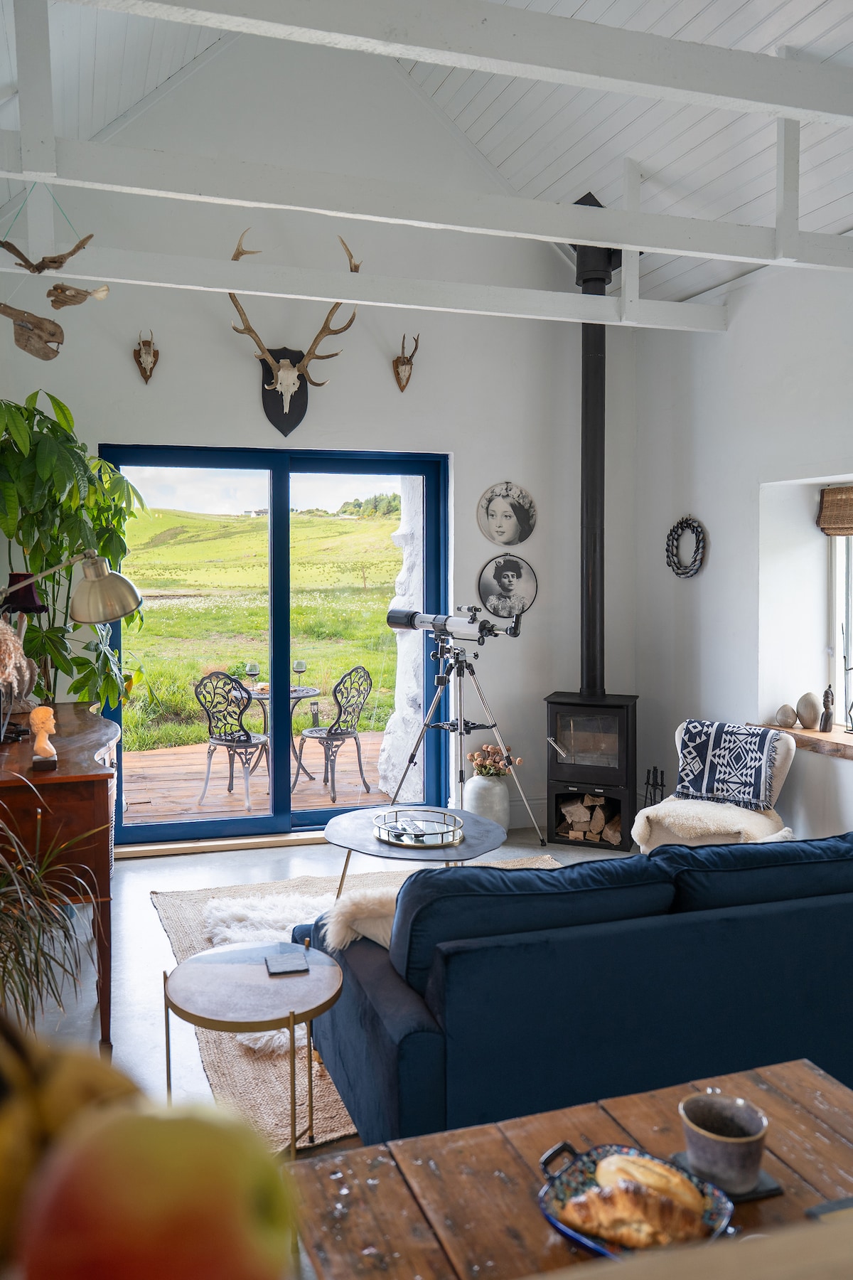 Gael is a modern cabin on a working croft, which captures uninterrupted views over Portree bay, Ben Tianavaig and the Cuillin hills in the far distance. The cabin itself has a full height atrium which includes a functional kitchenette, seating area, log-burner and a three-piece bathroom suite. The mezzanine level is accessed by a wooden staircase featuring a comfortable double bed. Situated just off the Scorrybreach trail this is the perfect launchpad for your Skye adventure.