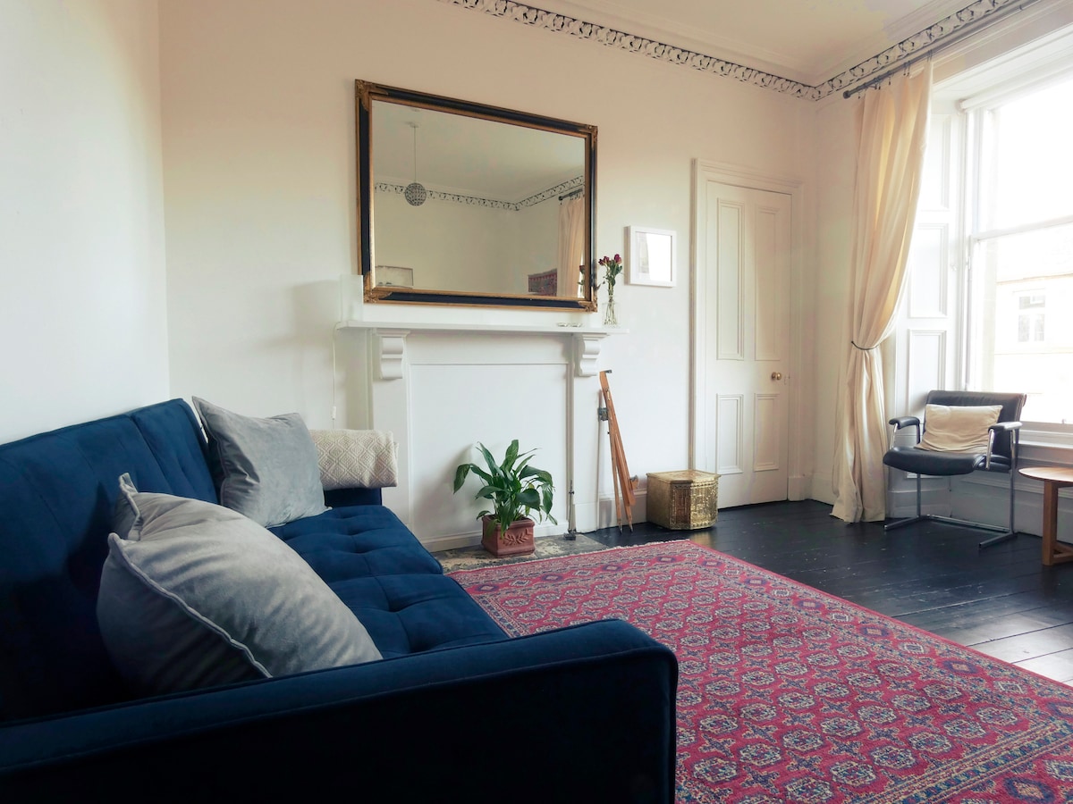 Stylish, comfortable 2nd floor flat in traditional Victorian townhouse, in Edinburgh's leafy Abbeyhill area, owned by Scottish artist. The apartment is ideally situated, in a quiet street yet close to the heart of the city. Within easy walking distance of the Royal Mile, Holyrood Palace and Park, Calton Hill, Scottish Parliament and the Old Town. Light breakfast included in cost - croissants/jam, coffee, tea and milk. Plenty of shops, cafes, pubs and parks nearby.