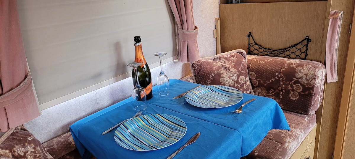 Belle is a beautiful,lovingly restored little vintage glamping caravan... She lives beside the shores of the Moray firth in the well kept grounds of Bunchrew Caravan park with wonderful views over the water and mountains beyond... A wonderful Space for a single traveller All campsite facilities including toilet, hot showers, laundry and catering van are available to guests.
