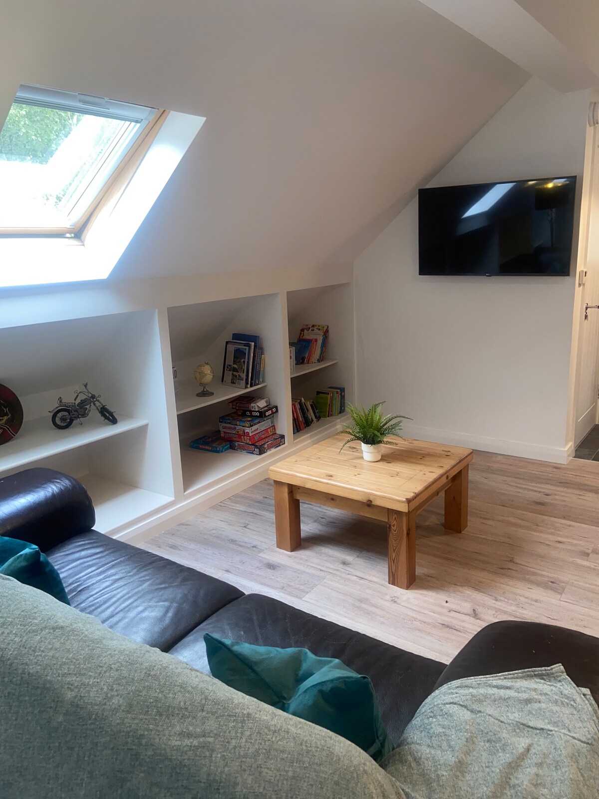 The Loft apartment is furnished to an extremely high standard and is situated above our double garage with a private entrance via an external concrete staircase. Open plan living with an elevated king size bed and pull out child bed (170cm). Fully functional kitchen with gas hob and dining space. Luxurious bathroom with towels and toiletries included. Outside the loft there is a patio space with wood burning hot tub solely for Loft guests to enjoy.