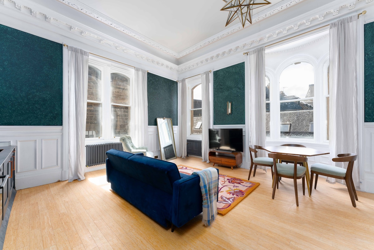 Welcome to The Penthouse Perched in Glasgow’s grand Park Circus, this stylish apartment offers everything you need. - Beautifully designed interiors - Superfast Wi-Fi & heating controls - 50" Smart TV for cosy nights in - Nespresso coffee & luxury toiletries - Fully equipped kitchen for self-catering Two luxurious double bedrooms, both inviting and stylish! A stroll to some of Glasgow’s top attractions, leafy parks, and cafés Child & pet friendly – bairns & 4 legged pals welcome.