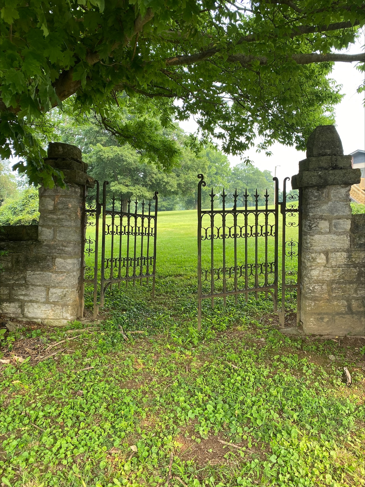Welcome to Stone Creek, a private 3 acre estate conveniently located minutes to Louisville, KY. This is the Ultimate Getaway! Upon entering the premises, you will find a custom iron security gate requiring coded access. Stone Creek boasts 2500+ sq ft of luxury living space complete with a full kitchen, laundry, and office. Guests will have full use of the grounds including the hot tub, fire pit, and the numerous covered decks & patios. Perfect romantic getaway or multi person retreat.