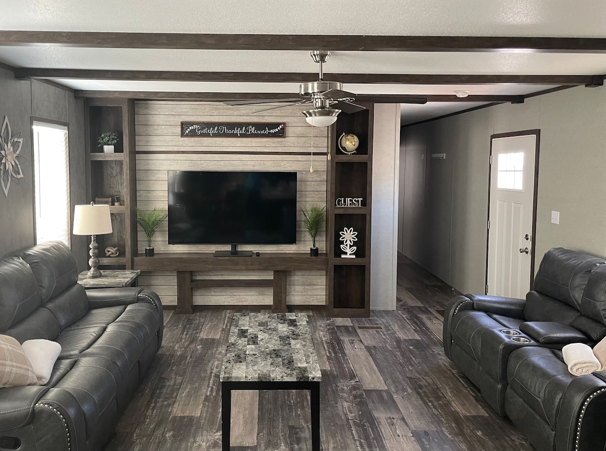 Whether you are in town for a long-term stay or just need a place to call home for a couple of nights, you have found the location that will be perfect for you! This newly constructed 3 bedroom 2 bath home will give you the comfort you need to relax and be rested for your work or travels. The open floor plan gives you and your family a chance to socialize while enjoying dinner or settling into a good movie on the large TV. There’s plenty of space for the guests to settle in for the night!