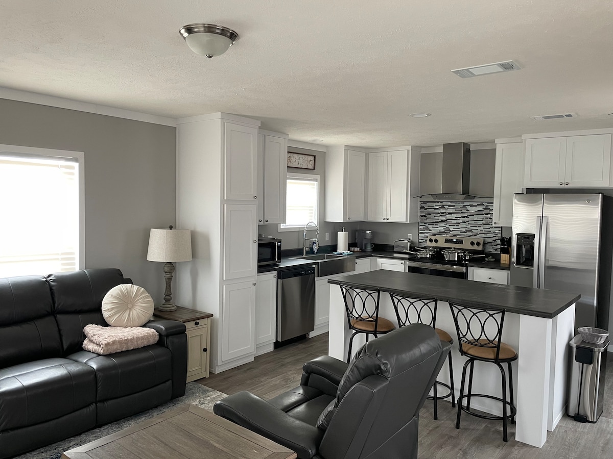 Nestled in the charming and welcoming community of Scott City, this completely remodeled apartment is the perfect base for your next adventure. Whether you're here to relax or explore, you’ll enjoy a comfortable stay with modern amenities, rustic touches, and a true Midwestern feel. Inside, you’ll find a cozy and stylish space with fast **WiFi**, a fully equipped kitchen, and a warm atmosphere enhanced by cow-inspired decor. It’s the perfect place to unwind after a day of exploring.