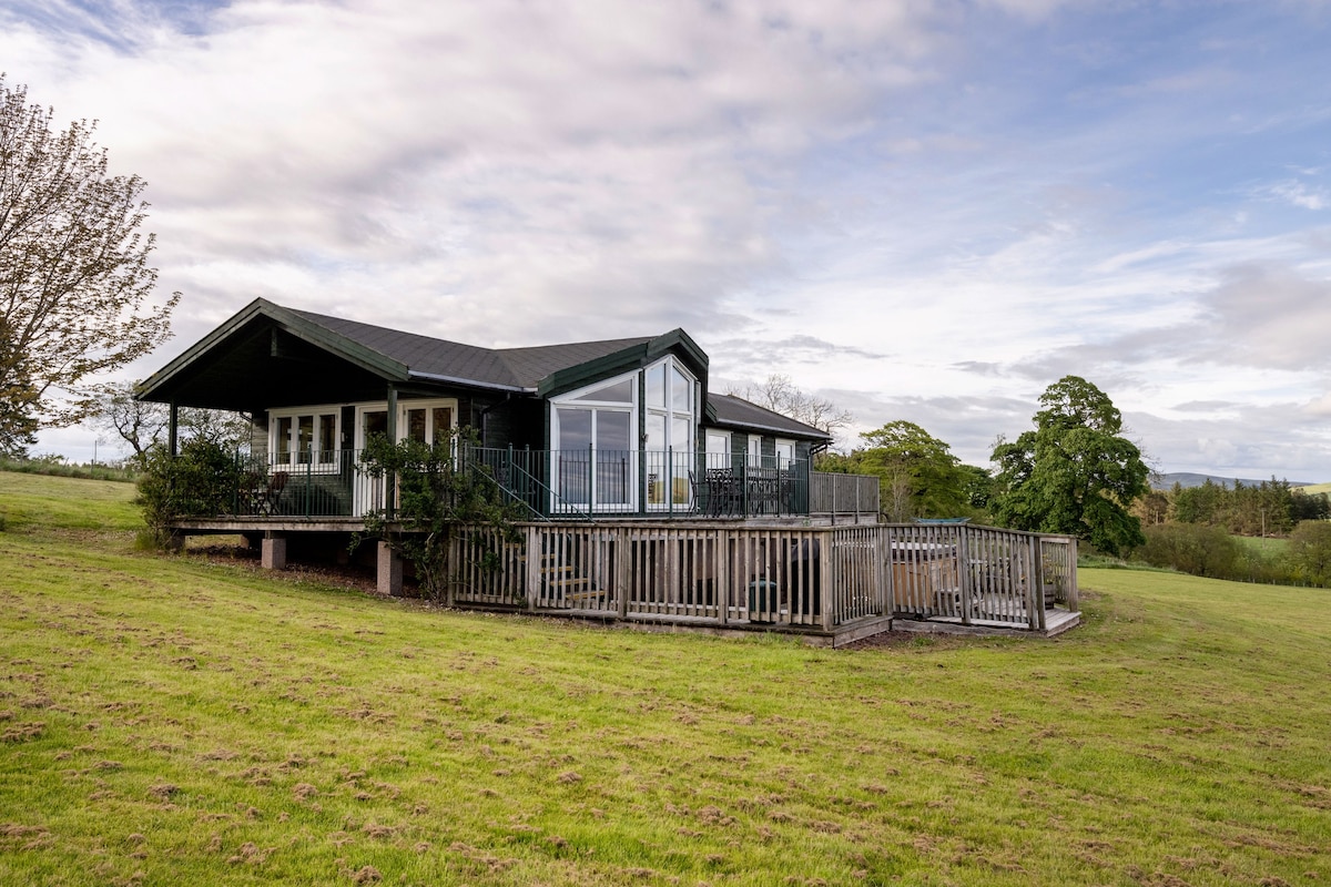 A fabulous lodge set in its own private grounds with glorious views all round. It sleeps 8 comfortably in 3 bedrooms and a double sofa bed and with a cosy wood burning stove it offers a wonderful home from home for all your friends and family. Nestled at the edge of the Scottish Borders, you are less than 2 miles from Biggar where you will find everything you need for a memorable holiday. Lots for the whole family to enjoy including museums, castles, mountain biking and golf.