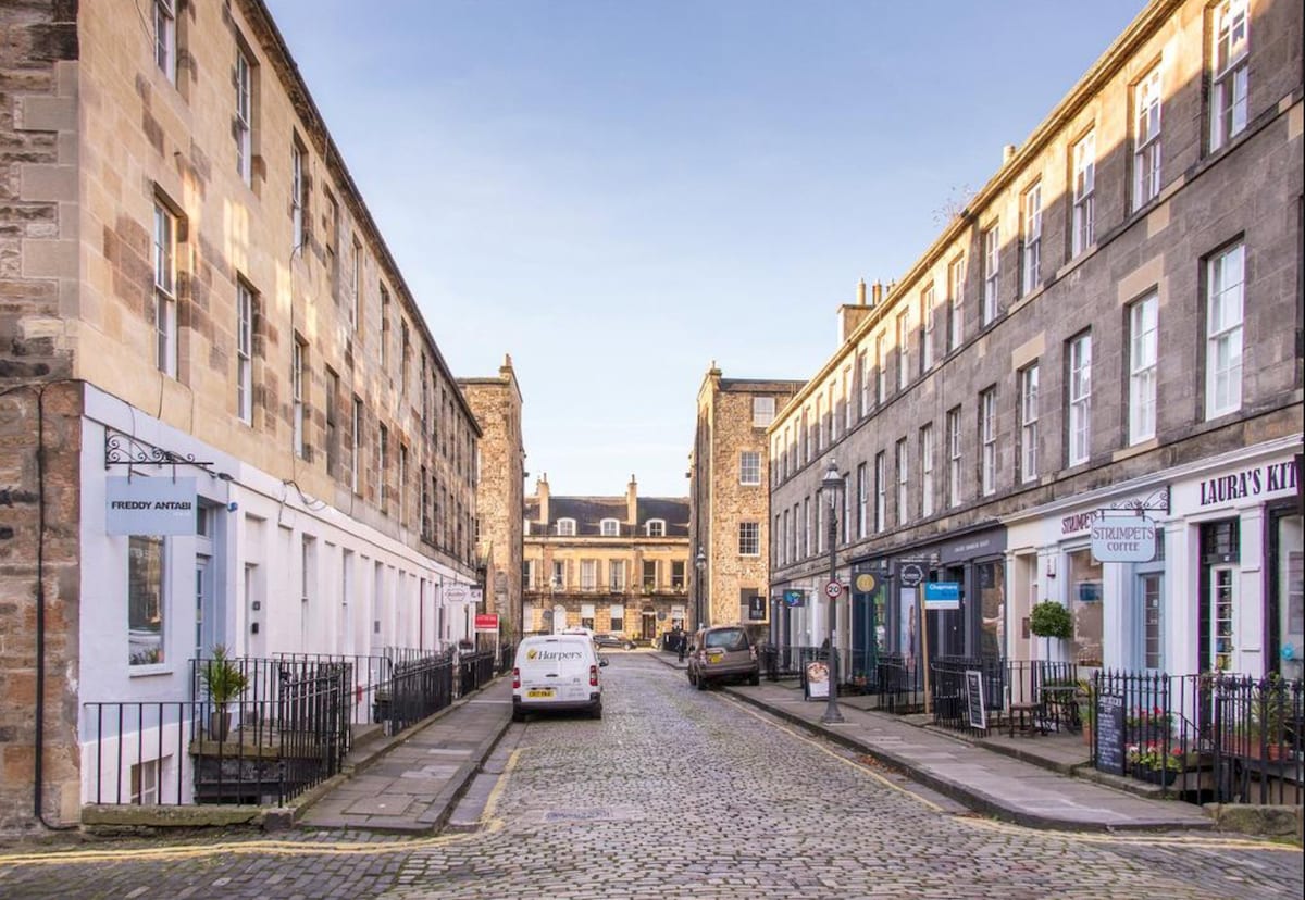 Diligently owner-managed and lying off a private courtyard, this delightful city-centre main-door flat is spacious, bright and sunny. Descend a stone stairway, and once inside everything is geared to your comfort, enjoyment and wellbeing, helped by us being Edinburgh locals who can step in and assist should the need arise. A sense of scale and serenity pervades the softly lit interior, where lovingly decorated rooms effortlessly blend every modern convenience with authenticity and traditional finishes. The updated kitchen and bathroom combine to offer all the comfort and features of home. BEDROOM Warmly lit by a floor-standing lamp, supplemented by reading lights within easy reach over the lovely Kingsize (5ft/152cm) bed. A huge built-in wardrobe with three mirrored doors provides great storage & hanging space, and the room is a short hop from the bathroom. BATHROOM The tiled bathroom features a full-width walk-in shower with powerful fixed & hand-held shower heads, A modern basin offers instant hot water, set against a full-height/full-length mirrored wall. The WC and heated towel radiator complete the picture. SITTING ROOM The front door leads directly to the living room, meaning it enjoys a natural flow to/from the private courtyard. Seating is comfortable and tables are plentiful. Warm lighting highlights walls hung with pictures, and the sash window has working shutters. KITCHEN Clean & modern with wooden worktops and light flooding in through two sash windows, which open and link to the courtyard. Masses of drawers/cupboards and fully equipped - gas hob, electric fan-oven, microwave, dishwasher, fridge with freezer compartment. UTILITY ROOM A modern automatic washer/dryer operates quietly behind a closed door off the main living room. This walk-in area also provides a wealth of storage and worktop space for associated items. PRIVATE COURTYARD The private basement courtyard enjoys the morning sun and comes equipped with a table and two chairs. It isn't naturally overlooked, but the three sash windows from the flat itself open wide onto it, meaning that those inside aren't isolated from those inside. The street above is inherently quiet meaning that this idyllic undisturbed space is a huge asset to the property and will enhance summer visits. Perfect for al-fresco breakfasting or evening drinks. ARRIVAL On your arrival the property will be set up with fresh bed linen, towels and dish towels. You can wash & dry anything easily anytime, but for longer stays extra linen can easily be provided by prior arrangement. ACCESSIBILITY Sadly the age of the property and the basement location mean that access will be unsuitable for some. These factors are regrettable, but are outside the scope of any adaption we could do. Being owner managed you'll be dealing with us, not a Property Manager, and you'll find the passion and energy we've put into our home will reflect the effort put into ensuring your enjoyment. And as Edinburgh residents we can step in at your request should you find that helpful. The flat is in the central New Town neighbourhood. Here you'll find tranquillity amidst Edinburgh's restrained Georgian splendour, a lovely five-minute walk to all local amenities in nearby Stockbridge. The airport is easily reached by a cheap and regular bus service which stops minutes from the flat. The flat is also handy for both of Edinburgh's mainline rail stations which serve the entire UK comprehensively. Edinburgh Airport has multiple flights per day to London and most European destinations. The airport is easily reached by a cheap and regular bus service which stops minutes from the flat. The flat is also handy for both of Edinburgh's mainline rail stations which serve the entire UK comprehensively. Car use isn't required in Edinburgh since everywhere is walkable, but drivers will find restricted paid parking right outside the front door, or longer-term parking in one of the city's main car parks. Once settled in, you'll find Edinburgh to be a compact city and a joy to walk around. The East Lothian coast with its myriad beach walks, links courses and pretty costal towns can be reached quickly by car or train, as can the East Neuk of Fife with a string of charming fishing villages. Those wishing to explore further afield will find Glasgow, Stirling, Perth and St Andrews within easy reach by car or public transport, with the majestic highlands and the rural Scottish Borders quite feasible for day trips. On your arrival, the property will be set up with fresh bed linen, towels and dish towels. You can wash and dry anything easily anytime, but for longer stays extra linen can be provided by prior arrangement. The flat is in the central New Town neighbourhood. Here you'll find tranquillity amidst Edinburgh's restrained Georgian splendour, a lovely five-minute walk to all local amenities in nearby Stockbridge. The airport is easily reached by a cheap and regular bus service which stops minutes from the flat. The flat is also handy for both of Edinburgh's mainline rail stations which serve the entire UK comprehensively.
