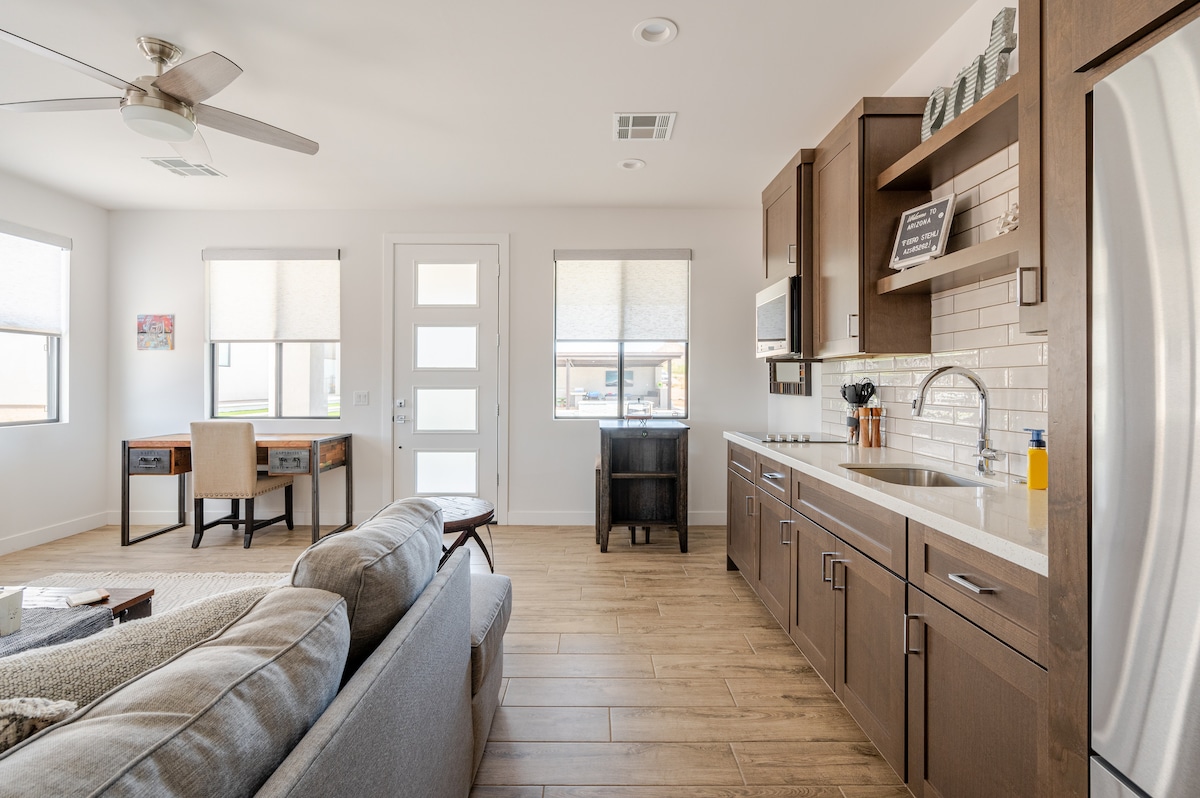 Welcome to Scottsdale Great Escape, your spacious and sunlit retreat. The open layout invites an abundance of natural light, creating a warm and inviting atmosphere. Whether you're here to work or unwind, we've got you covered with high-speed WiFi in the dedicated workspace, a fully equipped kitchen, a delightful backyard patio with an outdoor grill, and a cozy sofa where you can unwind and enjoy your favorite TV shows. For added convenience, there is an attached garage.