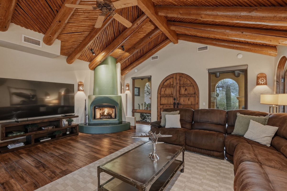 The Landing at Sky Ranch Retreat is a rare stay on a private airpark in Carefree, AZ. Enjoy aircraft views, sunrise coffee, desert sunsets, wildlife, stargazing, indoor fireplace, and multiple patios with golf course views. Pet-friendly with exercise equipment and luxury bamboo cooling sheets. Stream your favorites on a fully loaded HDTV. Minutes to hiking, golf, spas, and Cave Creek nightlife — perfect for couples, business travel, or a quiet retreat with two private master suites.