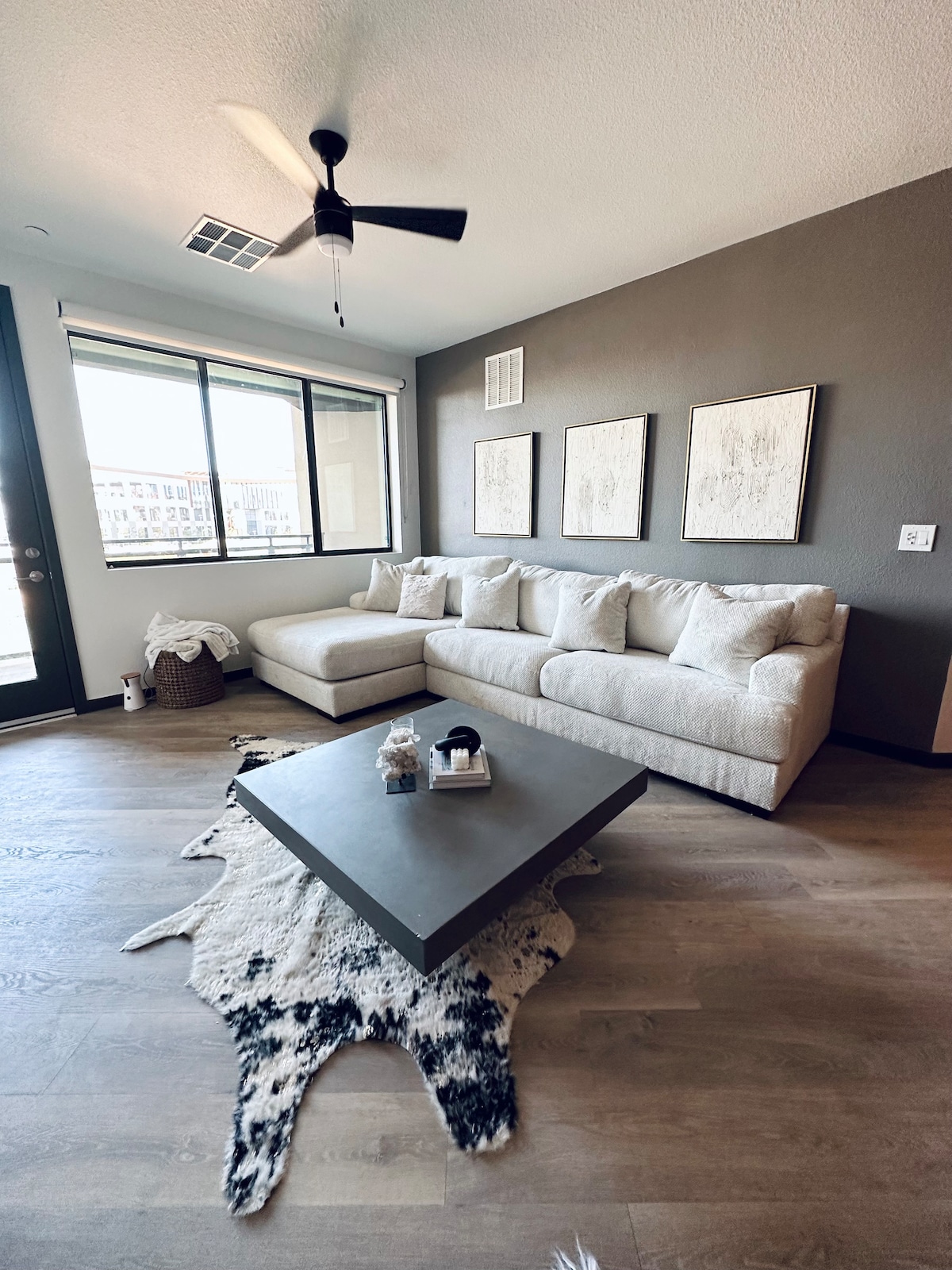 The Space: Welcome to Palm Paradise, your relaxing retreat in the heart of Old Town Scottsdale. renovated in October 2024, this condo blends stylish desert-boho design with all the comforts of home, creating a space that is both beautiful and functional. Unwind on the cozy green corduroy sectional, perfect for napping, or step out onto the private balcony to witness spectacular sunset views over Camelback Mountain. Step into the tranquil bedroom with a king-sized bed and high quality linens.