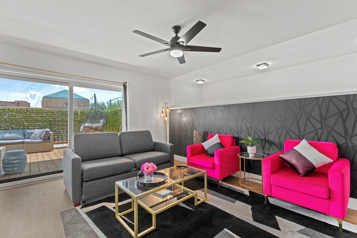 **Scottsdale Oasis: Stylish Suite with Comfort & Convenience** Discover your perfect Scottsdale getaway in our beautifully designed suite. Relax on a King-size bed, enjoy a dedicated workspace, then step outside to a private patio or unwind on the cozy loveseat. Located near top attractions, and featuring high-speed Wi-Fi, Smart TV, mini fridge, coffee maker, & microwave. Relax with blackout curtains & central A/C! TPT #21484025 SLN #2023668