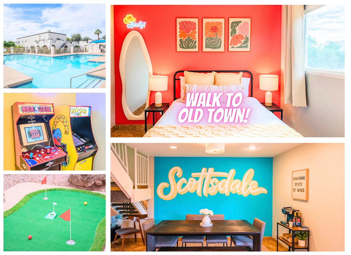 Low Cleaning Fee! Super fun luxury property! PERFECT location! Dreamy private heated pool (heating included), chef’s kitchen, two King beds and four bunk beds. Walk to Starbucks (and other spots). Take photos with the custom murals! Four HD Smart TVs! Property is modern and spacious enough for any size group! Family owned, operated and meticulously cared for. The neighborhood is super chill & convenient to everything! Super low fee! Read our reviews! We Care! @GoodVibesScottsdale